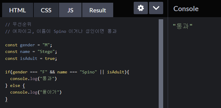 그 결과 if 가 실행되지 않고 건너뛰어서 true 가 반환되고 있음