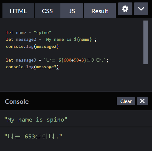 백틱은 문자열 내부에 변수를 표현할 때 사용함 (파이썬에서 f-string 개념인가보다)