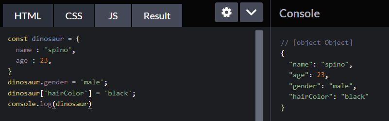 for(let key in dinosaur){