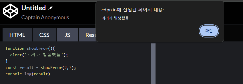 : 경고창을 띄우는 함수