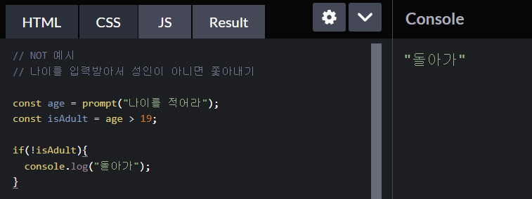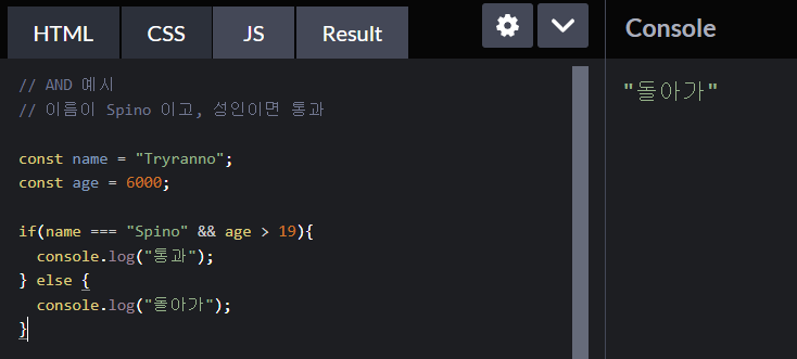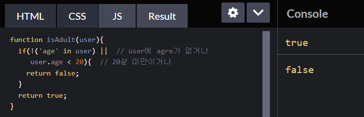 객체게 나이가 없을 경우 undefined 가 되어서 if 안의 조건문이 false 가 되고