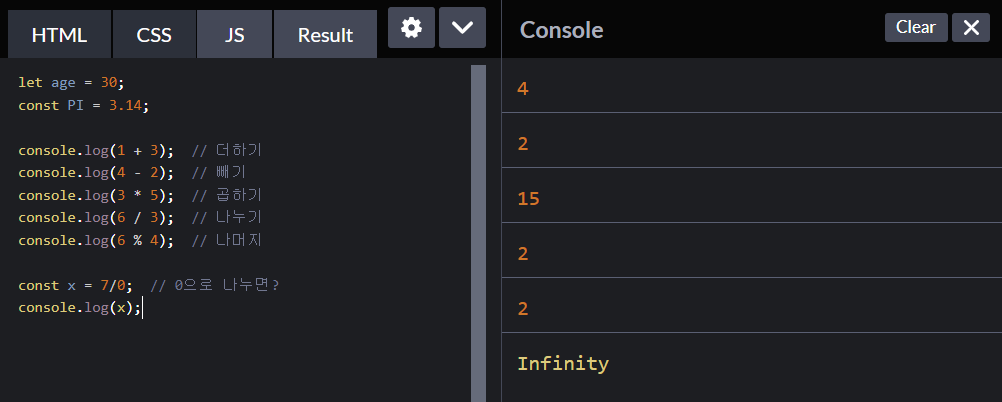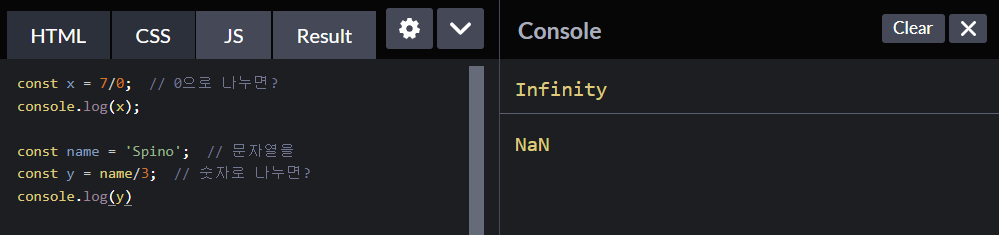 5. 숫자형 - 사칙연산 / Infinity / NaN / Boolean / undefined / typeof